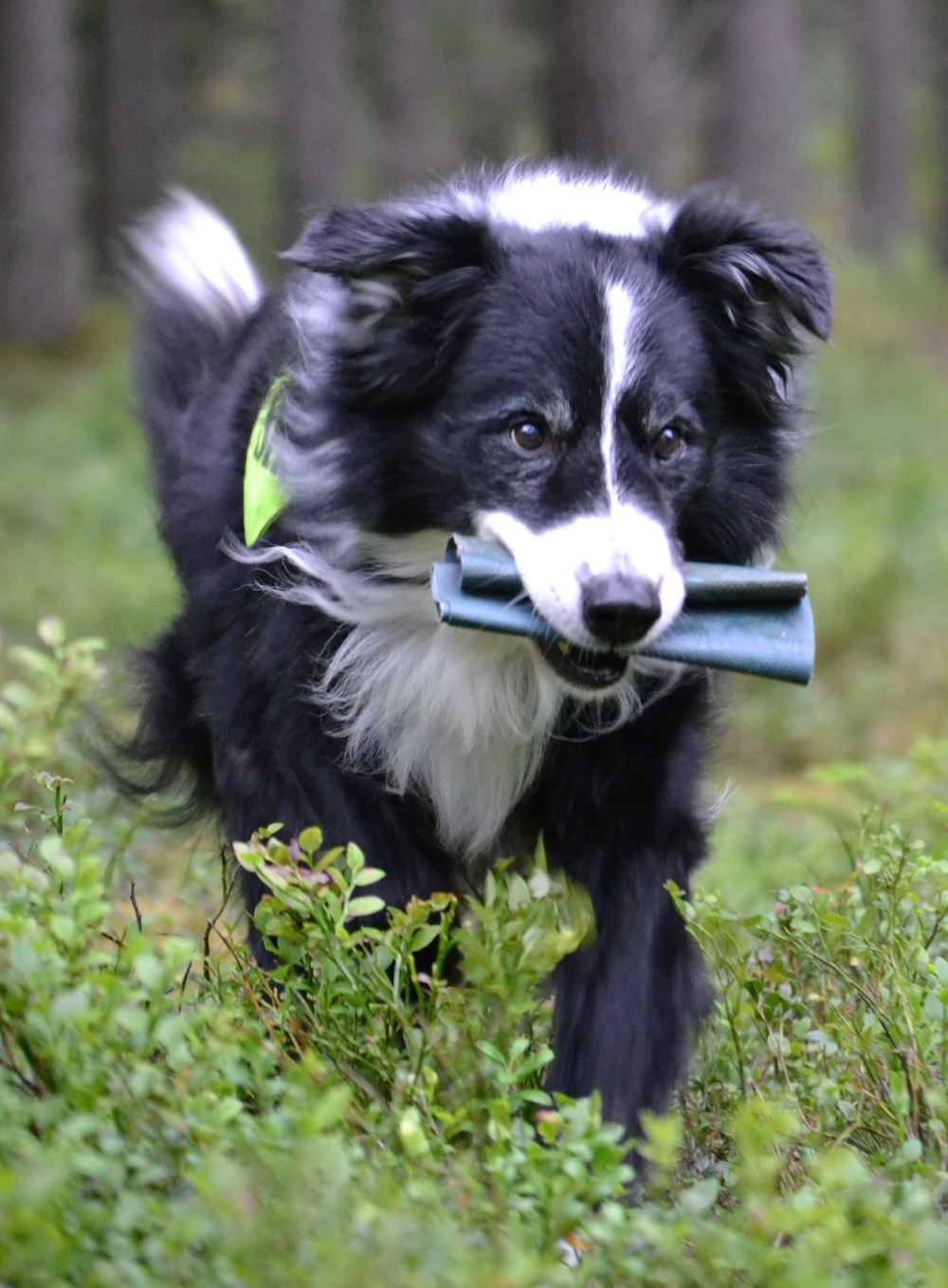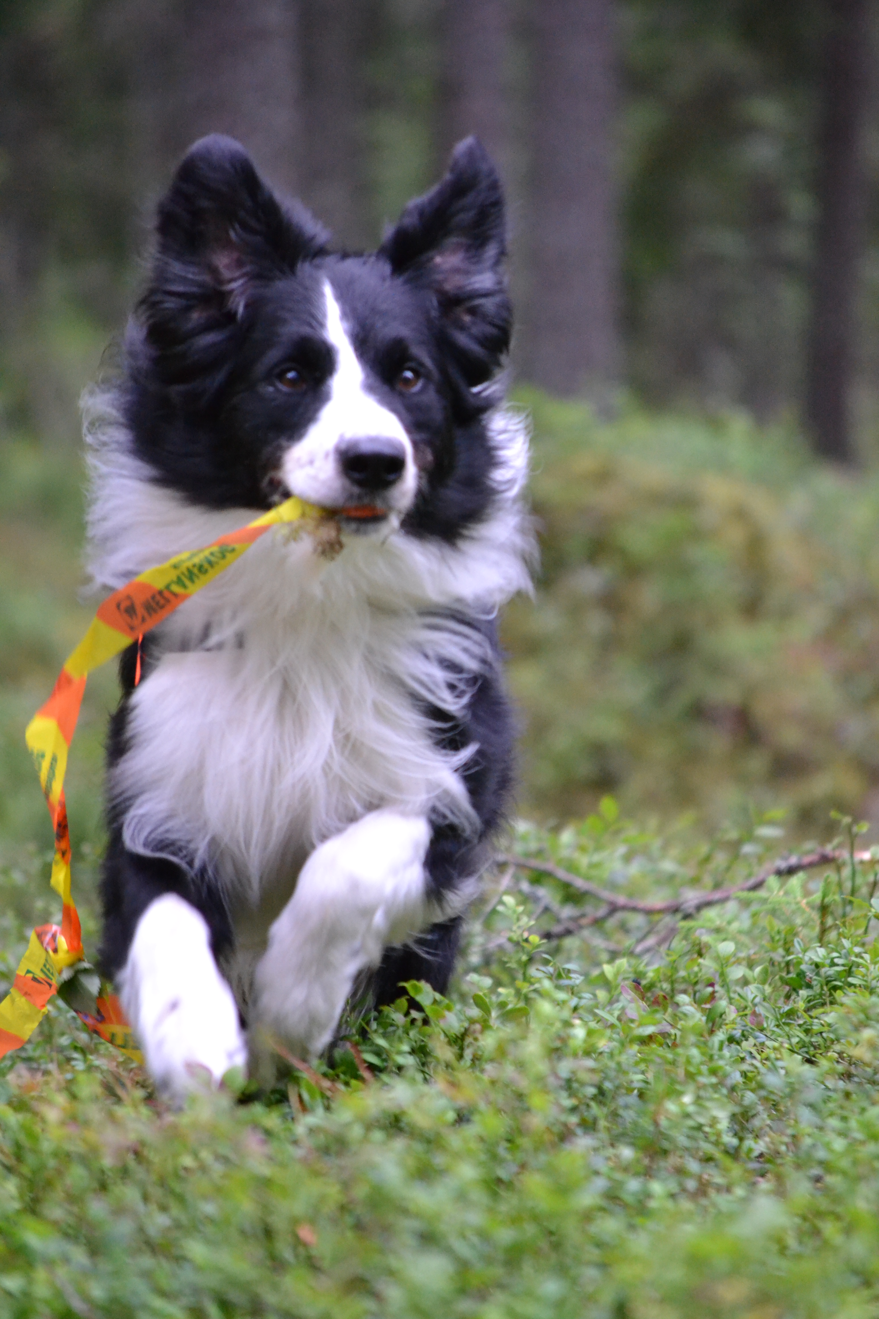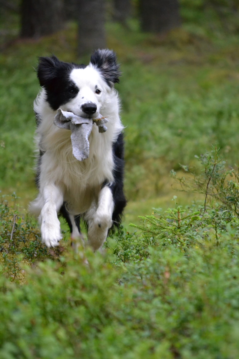 I söndags styrde vi bilen mot Västerfärnebo för att hälsa på Dick och Mayvor och träna lite hund ihop med dem. Och tränat fick vi! Uppletande med mycket gömda föremål i blåbärsris var svårt för pojkarna, men de lärde sig snabbt faktiskt. Sen blev det lydnadsträning och Tvebak fick ligga en plats med två BC-damer, varav den ena löpte! Han låg som klistrad i backen i 4 minuter! Kanske för att Martina plötsligt dök upp från skogen bakom honom efter en minut, vilken chock för stackars Tvebak som nu lärt sig att Martina inte tycker om när han kliar skägget eller för den sakens skull, kliar hela ryggen på platsliggningen. Sen att Martina denna gången bara skulle gå och ge godis till den löpande BC-tiken, det visste ju inte Tvebak.