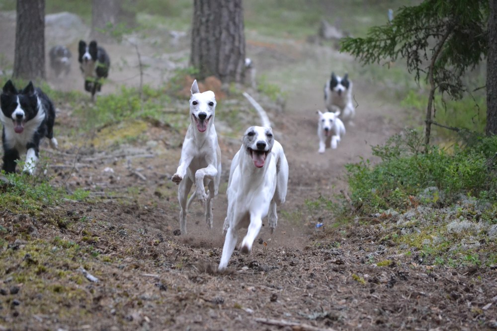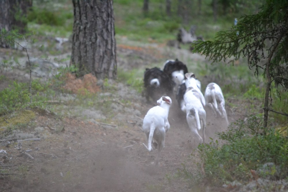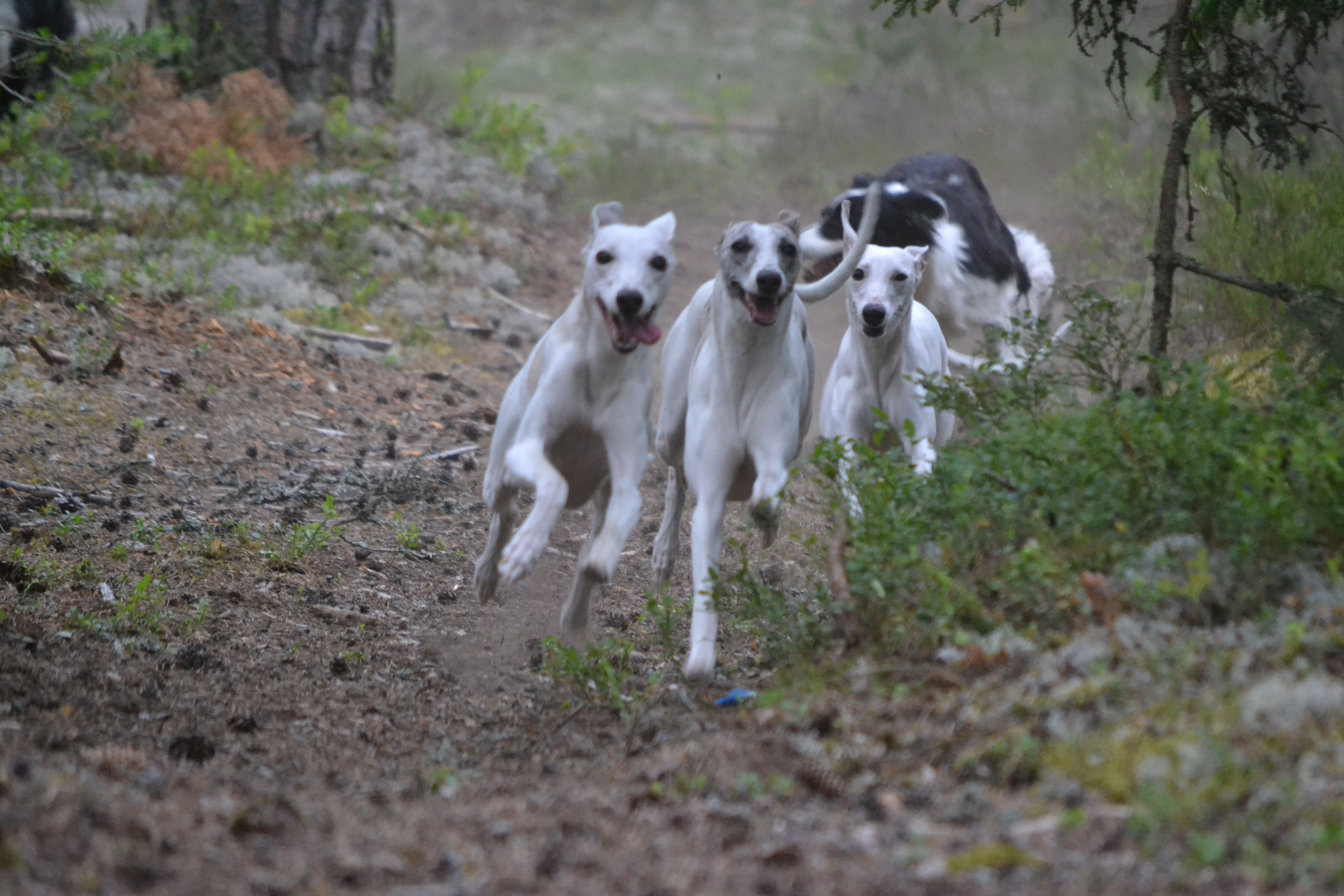 Våra nya hundar, eller...?Tvebak får kämpa i den nya terrängenCamps äldre helbror Nicke är snart i SM-form, plockar även in snitslarna till husse!Självklart hämtar han även in alla föremålenLika som bär......är Camp och hans äldre helsyster Natasha, endast sökskynkena hjälper deras ägare att skilja dem åt på bild!Camp vill också tävlas SM!Precis som Natasha och Nicke ska!Camps pappa Isidor, 13.5 år kan han också!Ingen av Dick och Mayvors hundar kan motstå kommandot "spring"!Fort går det när man är whippet!Gamla "vallhunden" till vänster i bild gör mig helt tårögd, Royal Canins Mobility och hon har blivit en helt ny hund på ålderns höst!Tvebak är förälskad i whipparna, men tyvärr gäller inte det samma från deras sida, trots Tvebaks otaliga inviter!Men fjäskar man länge nog blir man jagad ibland i varje fall och det är kul! Tvebak önskar sig en egen whippet som från 8 v ålder lär att skägg är ganska mysigt!Efter skogsträningen är det dags för Natasha att valla fåren lite, nästa avelstik på G kanske?På Dicks 65-årsdag utökades djurbeståndet med en söt fjällkokorsning, lilla Korinne, som här leds ut i koppel till sin nya lilla utehagePigga små ben visar snabbt glädje över att få komma ut!Fåren undrar vem denna nya flockmedlem ärPamir bekantar sig med sin nya flockmedlem, hos Dick och Mayvor går alla djur tillsammans!Livet leker!Glad som få andra!