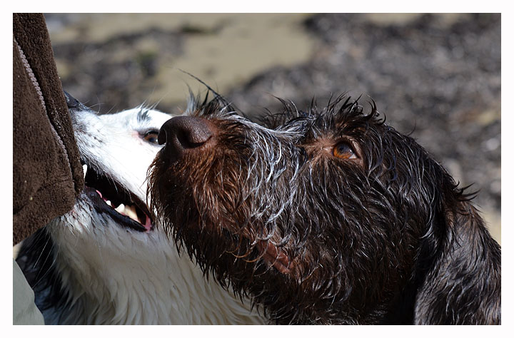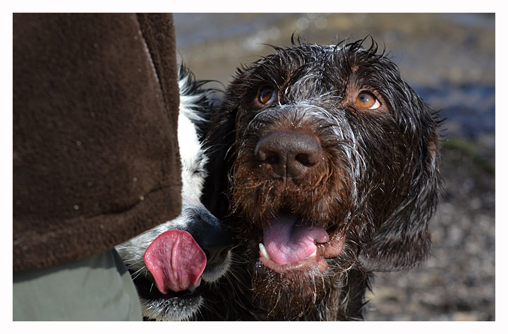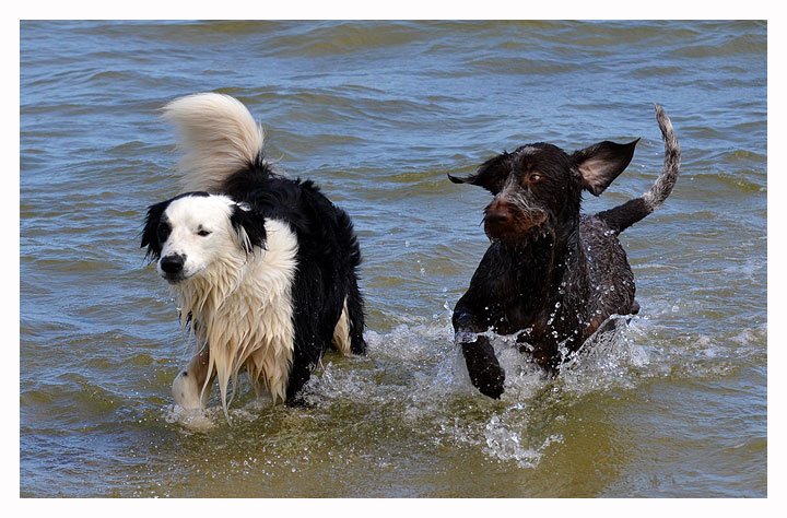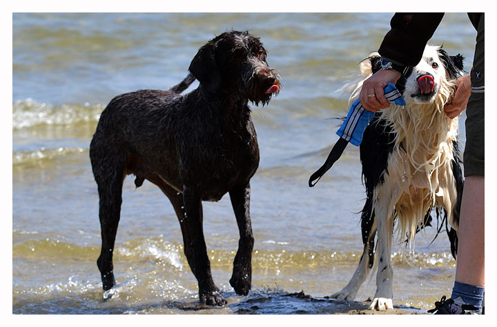 Det har varit mycket valp här på bloggen senaste tiden, men vi har ju två underbara pojkar till! Idag fick de skogspromenad, uppletande och sen strandpromenad. Behöver jag skriva att de har legat platta hela kvällen? Ett litet urval bilder av våra vattenmonster!