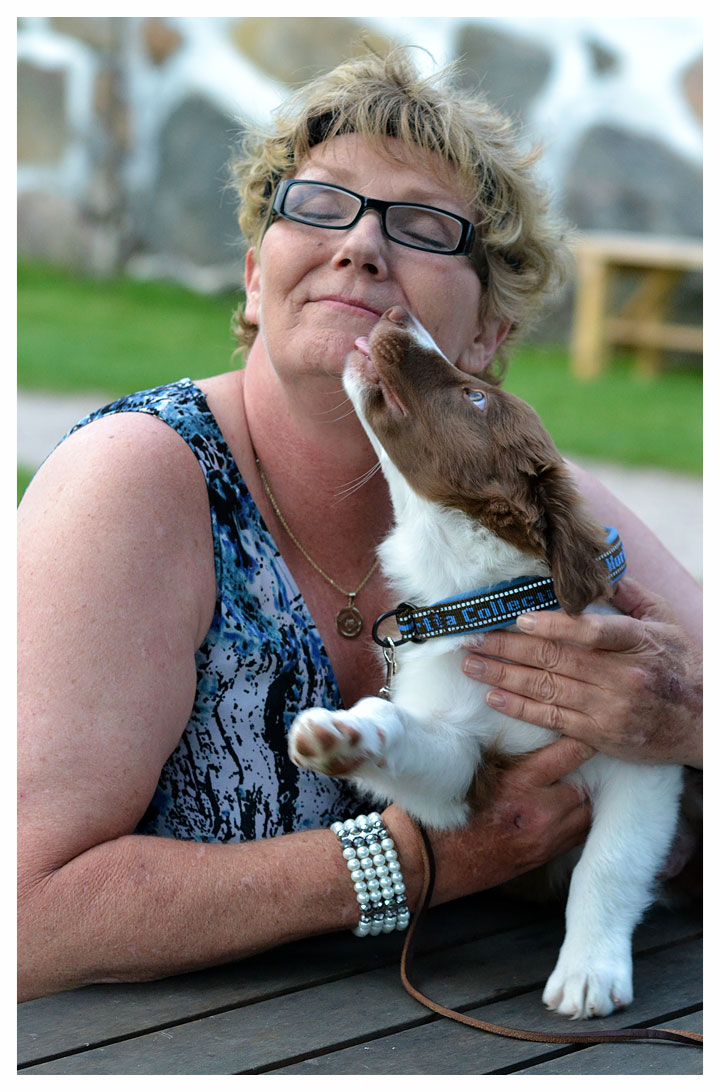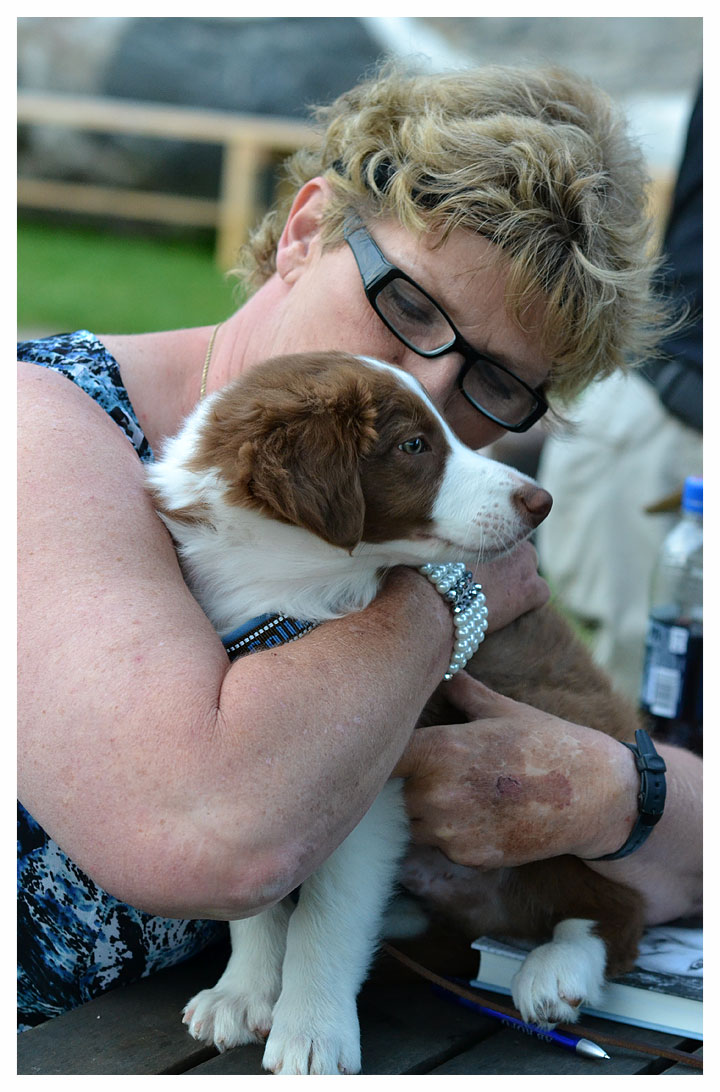 Som vi tidigare visat bild på var Rapp med oss och han sov gott medan vi lyssnade. Efteråt fick han hälsa på Annika, och trots att vi har ljudboken hemma var vi tvugna att köpa en signerad bok också, alltså fick jag snällt ställa mig i kön så Rapp kunde få kela lite mera med Annika 🙂