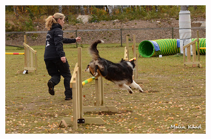 Tyvärr lyckades jag inte få bilder på Camilla och hennes Izo något av loppen, däremot fick jag några få bilder på Freja som tyvärr tvingades bryta på grund av ryggont. På tredje bilden ser man att hinderfixaren var lite trött, det hindret har Camilla och Freja inte passerat än 😉