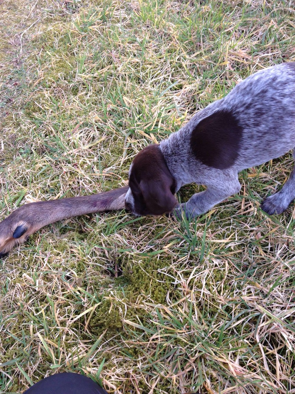 Holger har idag luktat på sin första hjortklöv, duktig kille var han, inte alls rädd! Liselotte, du får köra en sommarkurs med oss, i oktober vill vi gå anlagsprov!