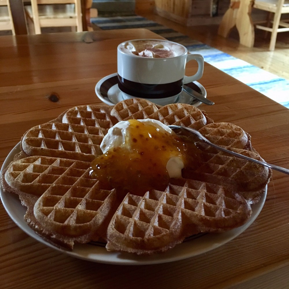 Väl nere i dalen igen avslutade vi med en för denna gången sista våffla med hjortronsylt och varm choklad. Det var oss verkligen väl unt idag!😋