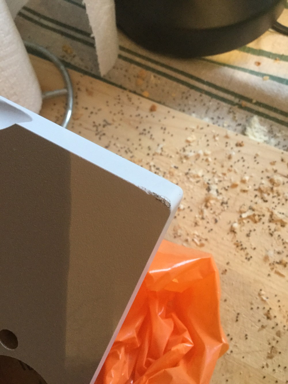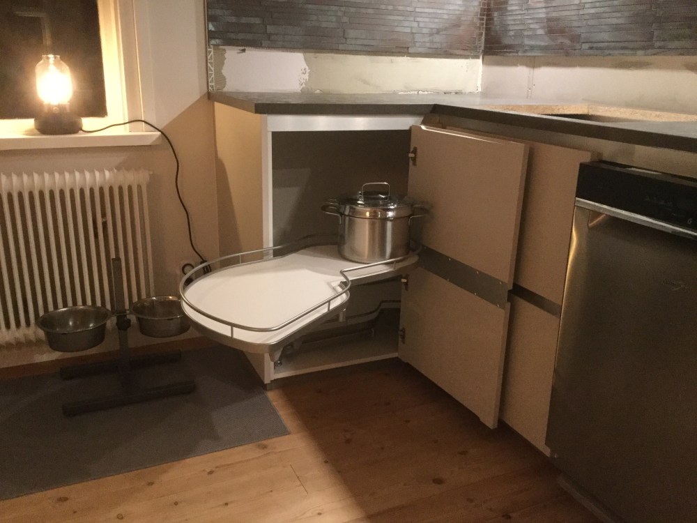 I slutet av förra veckan kom de nybeställda luckorna/lådfronterna och den nya bänkskivan. Idag kom snickaren, och bänkskivan är i varje fall monterad. Dock har vi inte fått nya fästen till de nya luckorna, och de var inte bara till att flytta från de trasiga luckorna utan extremt mycket våld. Och två av de nya luckorna var defekta. Den ena bara delvist, eftersom det var en tvådelad skåpslucka, så där har vi kunnat få ihop hela luckan med den delen som var ok i den första luckan (till le mans-skåpet). Sen kryddade vi allt med att hitta fler defekter på de två luckorna vi rent faktiskt redan satt upp😱