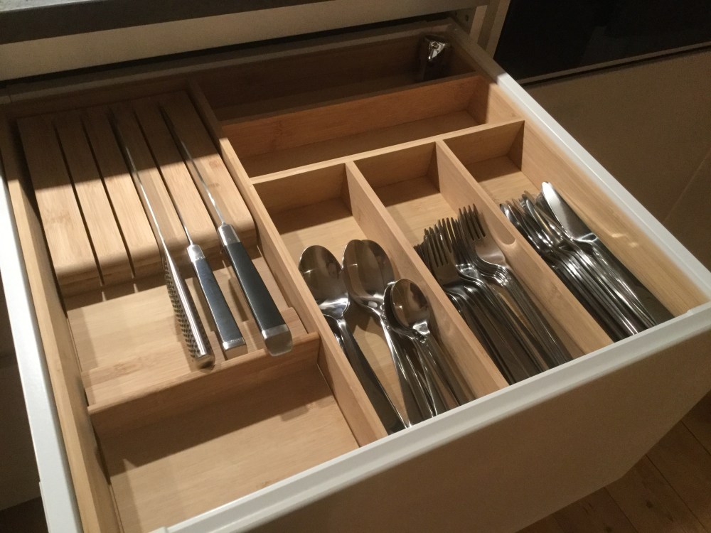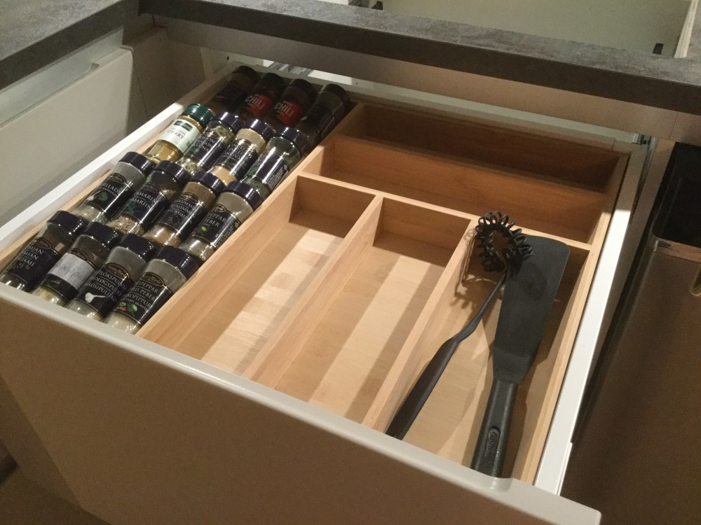 I eftermiddags körde vi till Kvik för att reklamera igen, och med oss hem fick vi lådinredning. Mera detaljer till lådorna är beställda, och nya luckor, nya gångjärn och lite annat smålull. Det är nu äntligen dags att börja inreda själva köket!