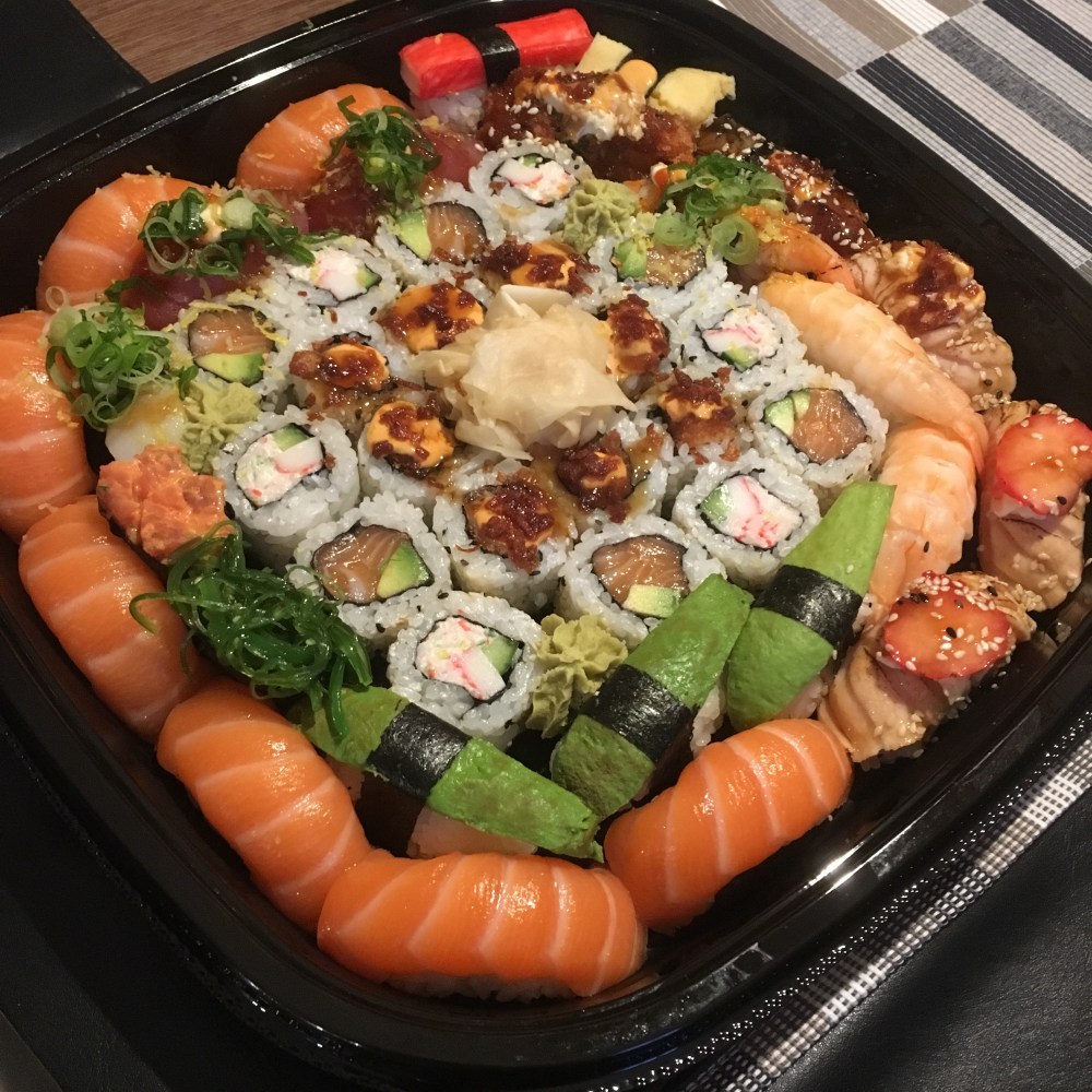 Första måltiden intogs i vårt nya kök, Martina bjöd på läcker sushi!