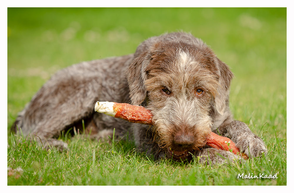 Idag var det Tvebaks födelsedag, så dagen till ära fick han spåra, träna lite lydnad, och äta det största tuggben han någonsin fått. Han sparade faktiskt lite till imorgon! ❤ Nu sover en trött och glad Tvebak i sin biabädd, dagens värme har tagit hårt på alla hundarna. Guinness har varit på sin första valpträning hos Lotte. Bilder från detta följer framöver! (Bilderna jag är med på, har självklart Martina tagit!)