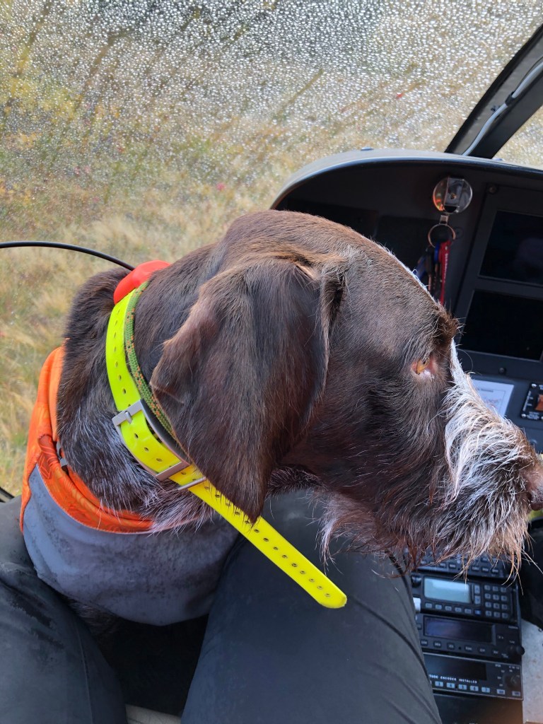 Ingen i familjen har åkt helikopter tidigare. Holger fick åka i framsätet vid mina fötter, Martina, Rapp och Guinness inkvarterades på baksätena.