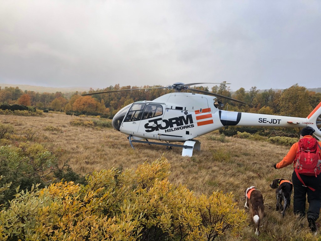 Vid Ramundbergets fjällparkering hämtade Jonas från Helikopterpiloterna oss i denna lilla Colibri.