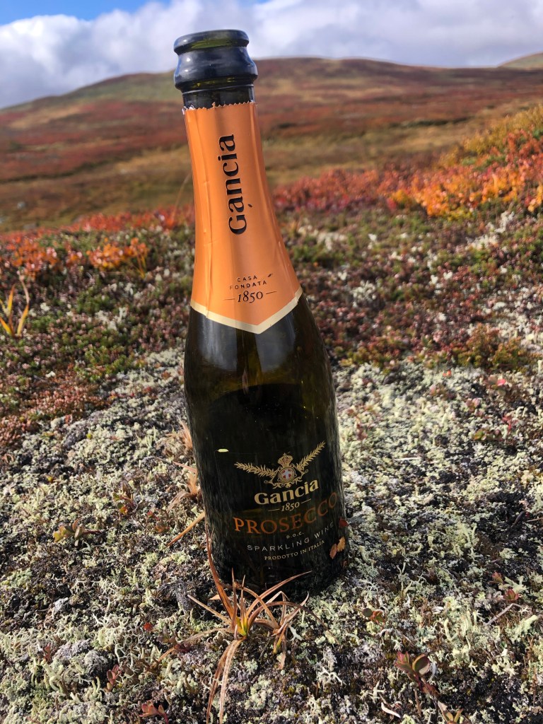Jag firades med lite bubbel och matsäck när vi kommit till lite torrare delar av kalfjället ❤️.