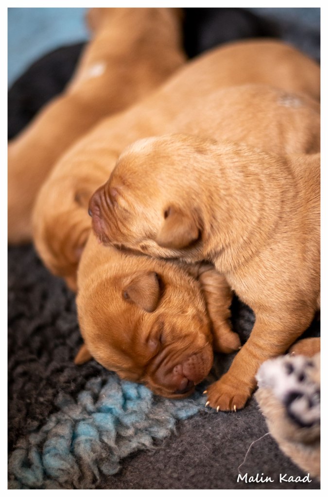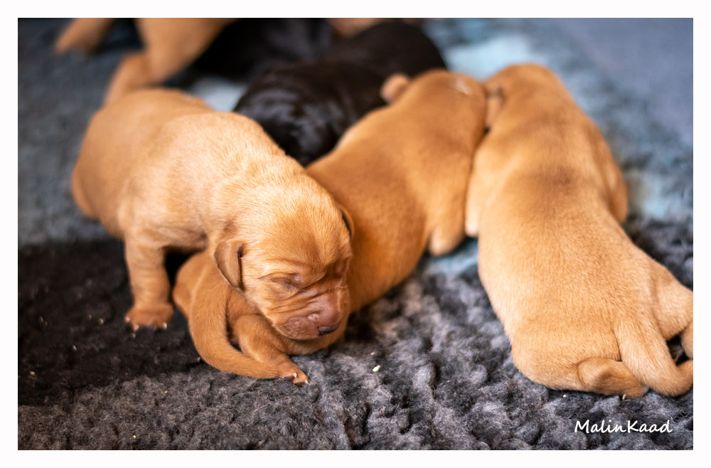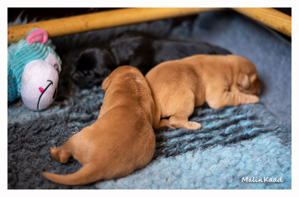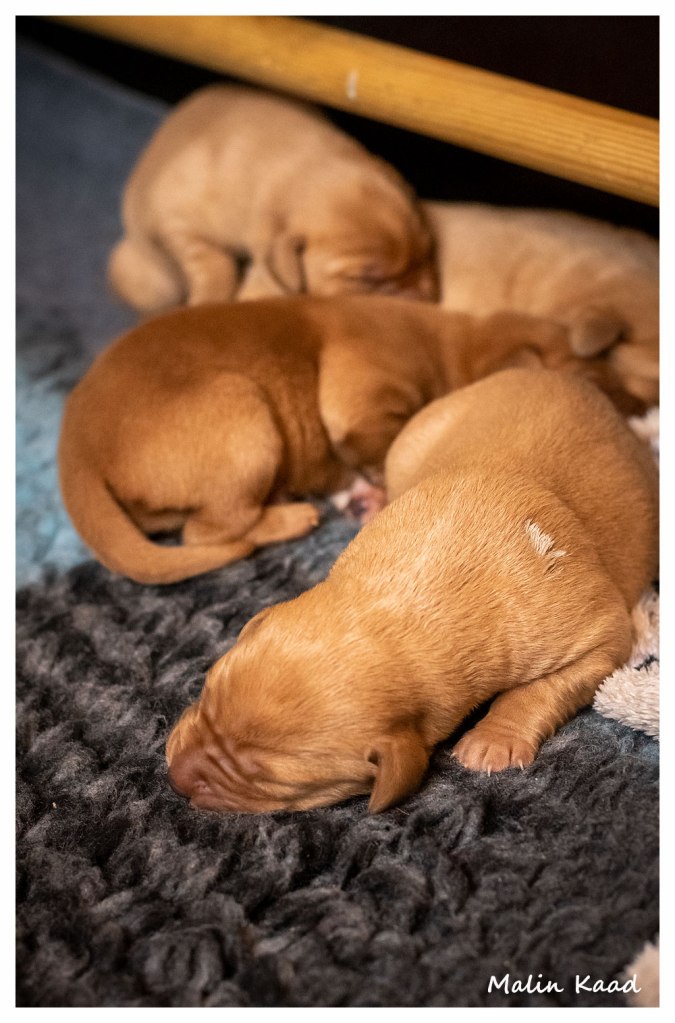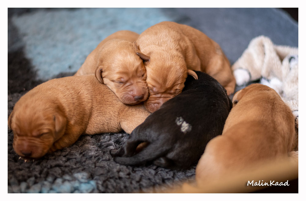 Till sist blev Guinness pappa. Den 9/6 föddes 8 stora valpar, fyra röda hanar, en svart hane, en svart tik och två röda tikar i allt. Valparna frodas och växer så det knakar. Mamma Nellie krympte rejält, men mår bra efter omständigheterna och vårdar sina småttingar väl. Någonstans i högen finns London Pride, och den 4 augusti flyttar han hem till oss! ❤
