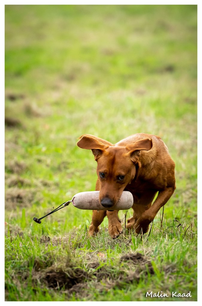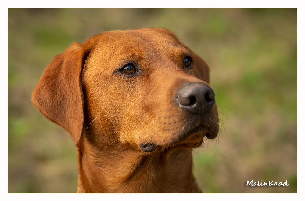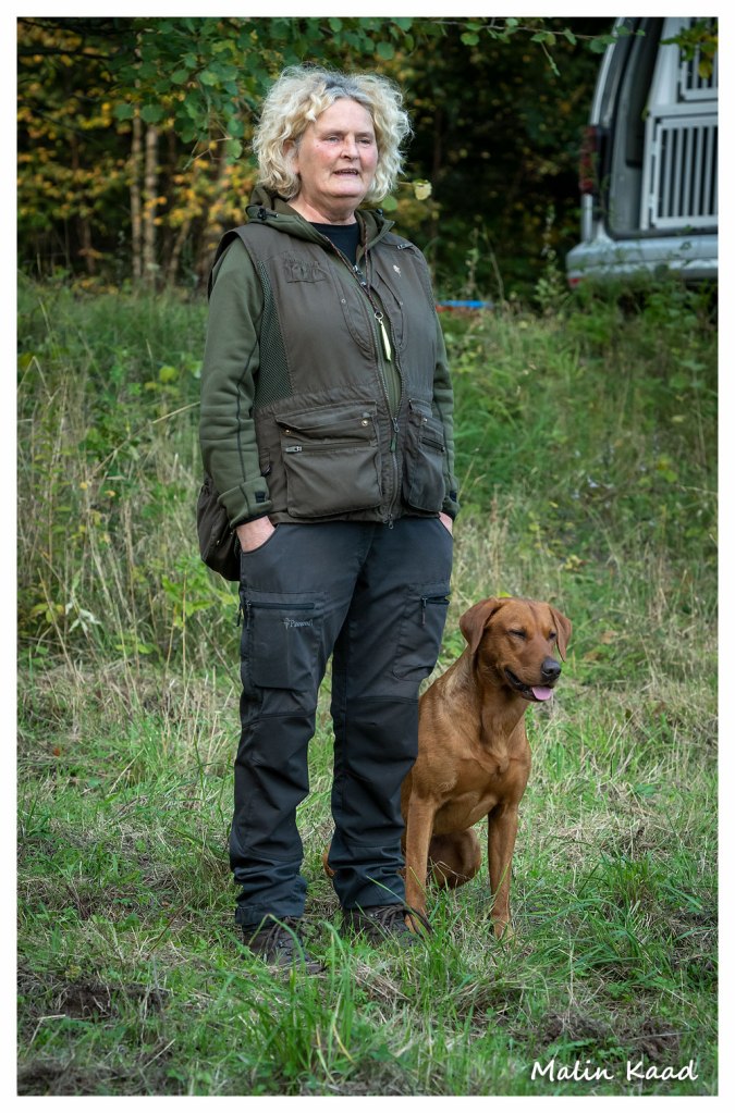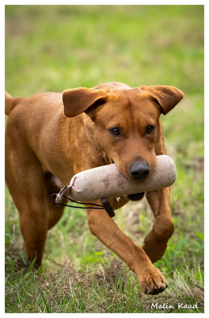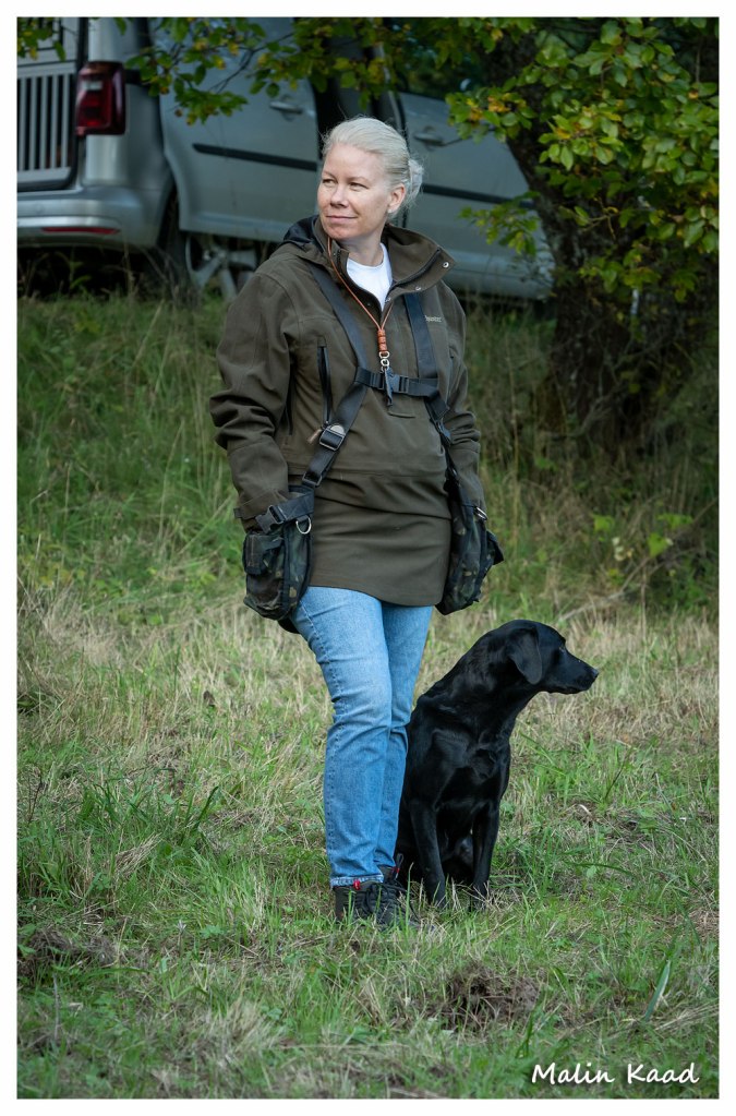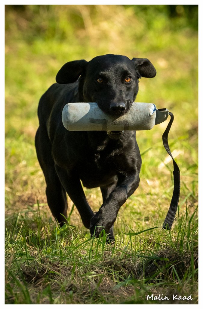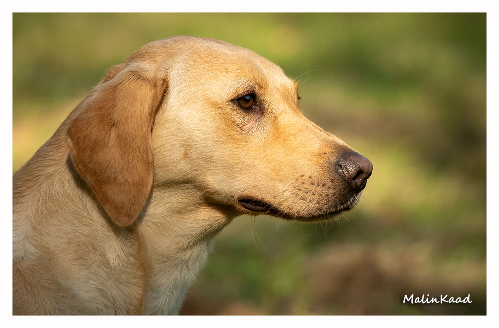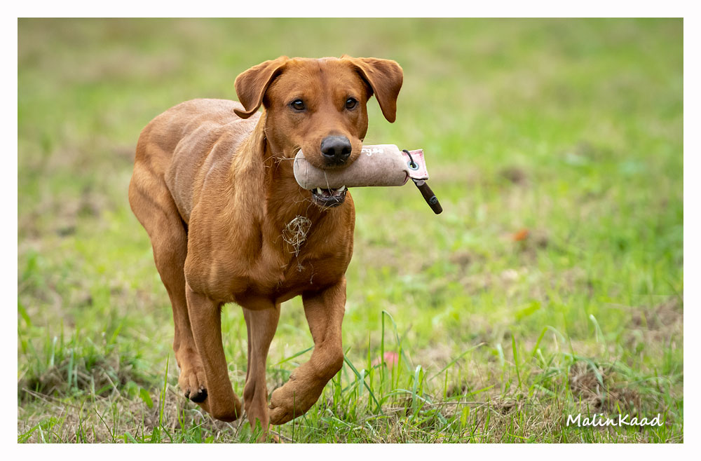 Apporteringsträning med Guinness, Guinness mamma Tjockis (gul) som förs av uppfödaren Lotte, samt Londons mamma Nellie (svart) som förs av Annette för första gången.