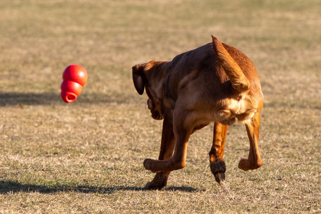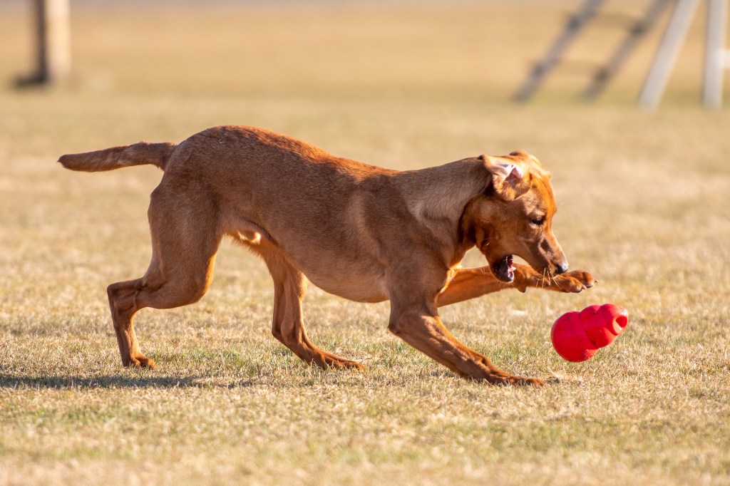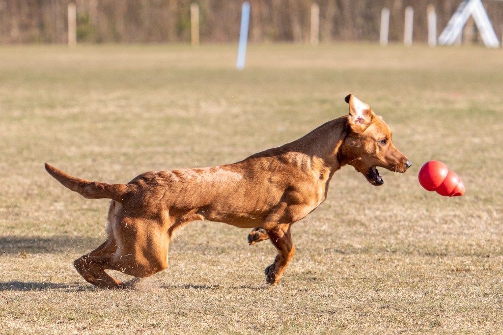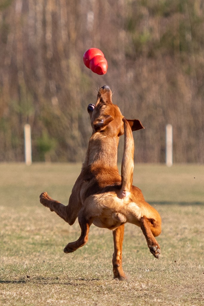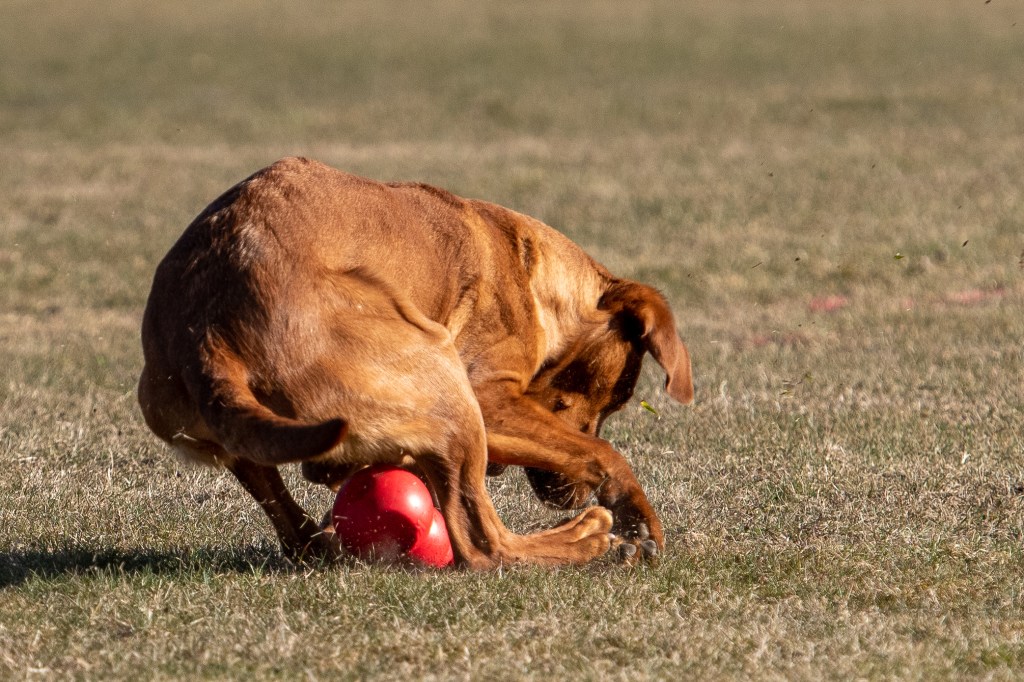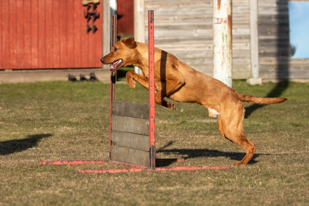 Äntligen har jag en hund som älskar att leka. Därför är det mest det London kan vid den här fotograferingen. Martina visar dock lite momentträning med honom också, fast London tror allt är lek 😀