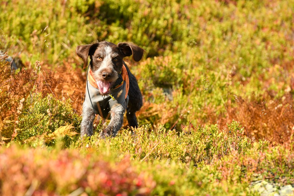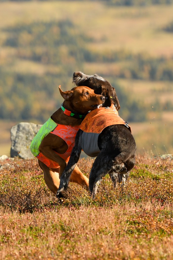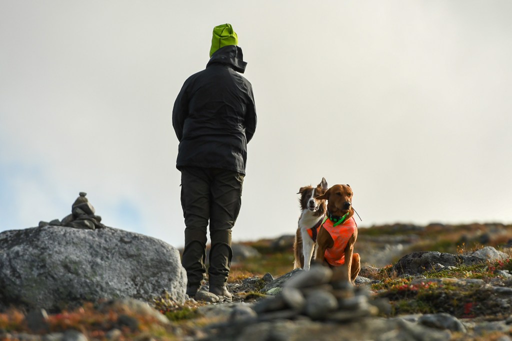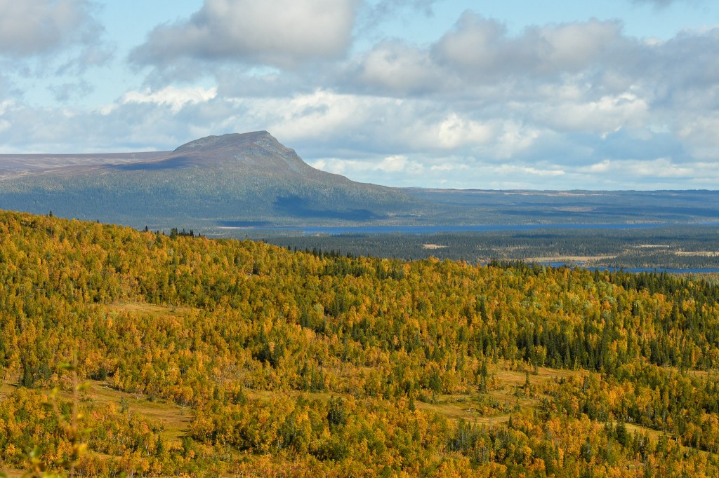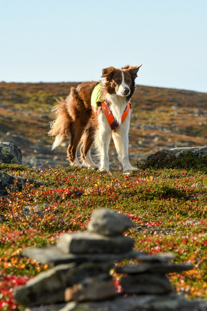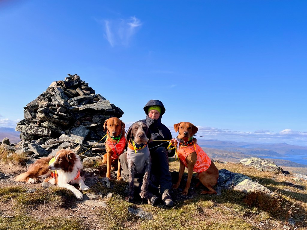 I söndags körde vi upp till Satsfjället, som ligger nästgårds till där vi bor. En lätt led, upp till toppen och ner igen utlovades. Våra skåneben höll inte helt med, framförallt inte mina! Men magiska vyer överallt. Vi hade tur så vädret klarnade upp och dimman som låg över fjället när vi körde upp till det, försvann strax efter vi påbörjat vandringen. London gick fint vid min sida, och har inte haltat ett steg efter lördagens lilla vurpa. Toppbilden kommer sist i flödet, taget med mobilen och Martina håller hårt i grabbarna för vindarna var inte nådiga på toppen. Toppen var även så liten, att jag inte kunde fota Martina och hundarna med mitt teleobjektiv.